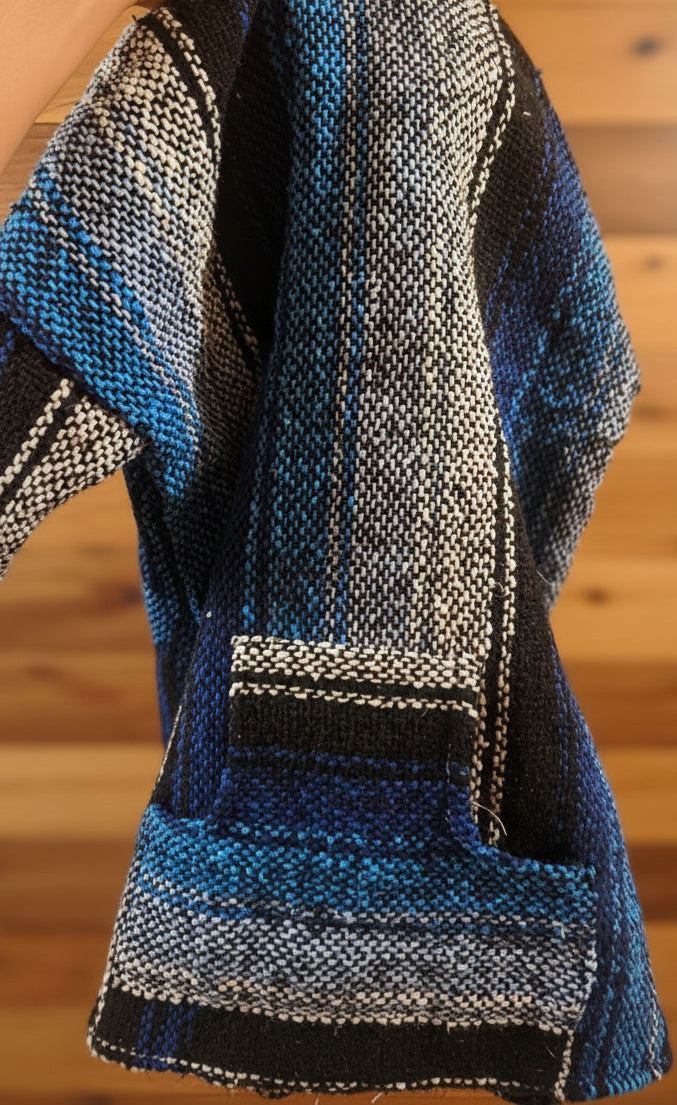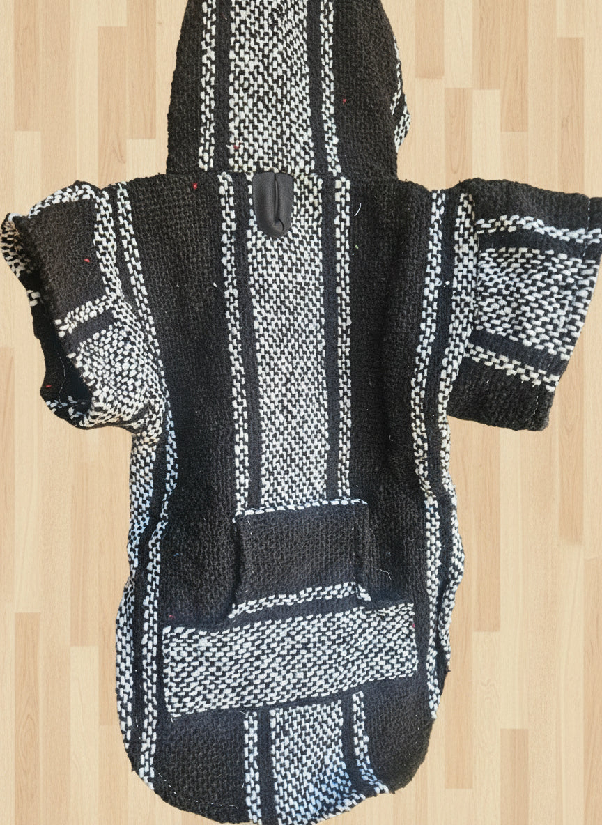 Cozy, authentic, and perfect for this cold weather! Each pet poncho is handmade and one-of-a-kind, so thread patterns may vary. Warm, comfy, and leash-friendly.