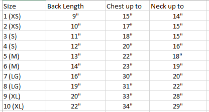 Size 2- 10" L neck to tail / chest up to 17"/ neck up to 15"